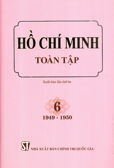 Tập 6, Hồ Chí Minh Toàn tập, xuất bản lần thứ ba bao gồm toàn bộ những bài trong những năm 1949 - 1950 đã công bố trong lần xuất bản thứ hai, đồng thời bổ sung 58 bài mới sưu tầm được. Chúng tôi cũng đưa vào phần Phụ lục Danh mục các Sắc lệnh do Chủ tịch Hồ Chí Minh ký từ năm 1949 đến năm 1950 và một bài tường thuật lời phát biểu của Người. Phần Chú thích và Bản chỉ dẫn tên người được cập nhật thông tin tư liệu và nhận định mới.