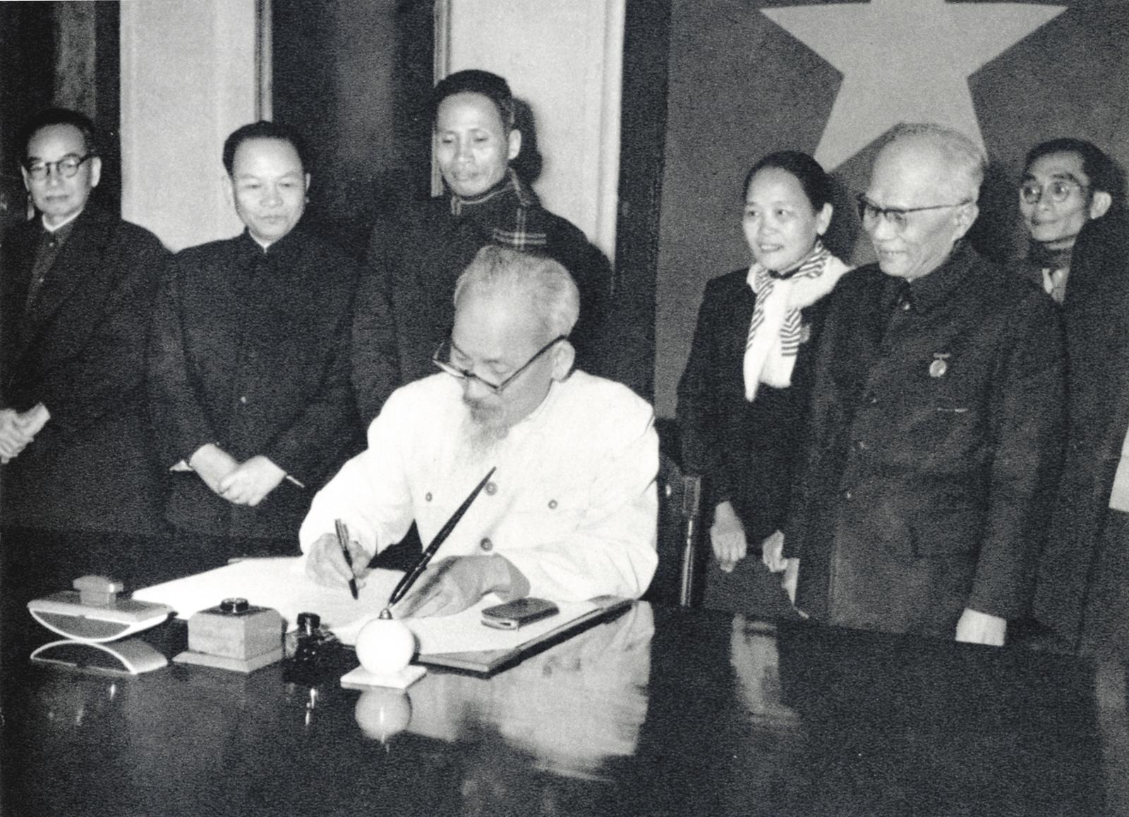 | Ngày 1-1-1960, Chủ tịch Hồ Chí Minh ký sắc lệnh công bố Hiến pháp mới của nước Việt Nam Dân chủ Cộng hòa _Ảnh: TTXVN |