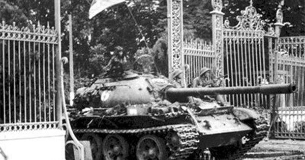 Kíp lái xe tăng do Đại đội trưởng xe tăng Bùi Quang Thận dẫn đầu tiến vào cắm cờ chiến thắng trên nóc Dinh Độc Lập (ảnh tư liệu)