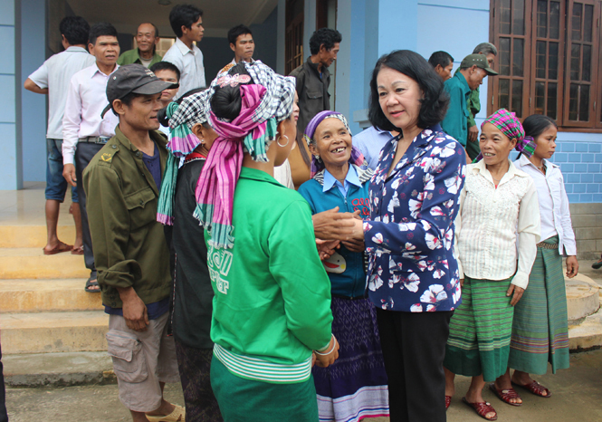 Đồng chí Trương Thị Mai, Ủy viên Bộ Chính trị, Bí thư Trung ương Đảng, Trưởng Ban Dân vận Trung ương thăm hỏi tình hình sản xuất, đời sống đồng bào dân tộc thiểu số huyện Minh Hóa, tỉnh Quảng Bình