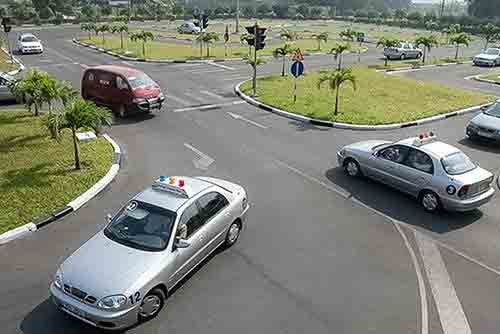 Kiểm tra khi kết thúc môn học thực hành lái xe với các bài thi liên hoàn, bài tiến lùi hình chữ chi và lái xe trên đường.