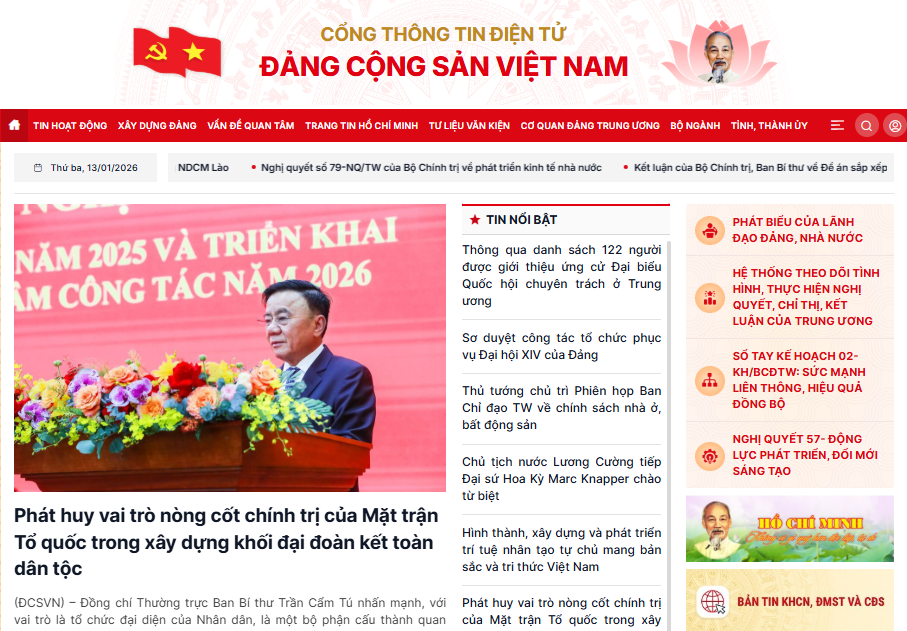 1. Cổng thông tin điện tử Đảng Cộng sản Việt Nam (địa chỉ truy cập: dangcongsan.vn; dangcongsan.org.vn) là kênh thông tin chính thống của Bộ Chính trị, Ban Bí thư trên không gian mạng; là nơi công bố chính thức các nghị quyết, chỉ thị, kết luận, quy chế, quy định, quyết định,... của Ban Chấp hành Trung ương Đảng, Bộ Chính trị, Ban Bí thư và thông tin hoạt động của các đồng chí lãnh đạo Đảng.